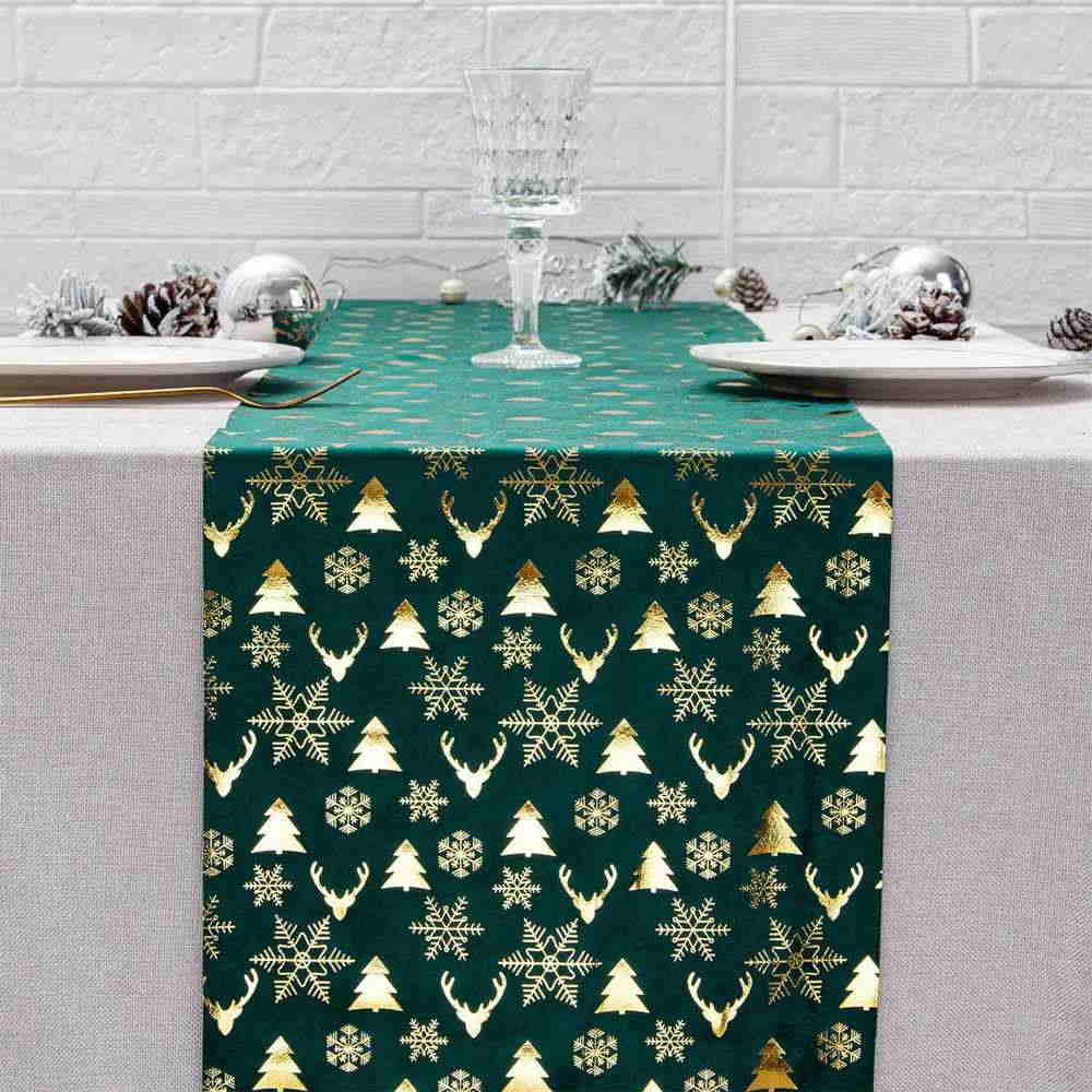 Camino cód. 58/62 para Mesa con motivo Navideño de 24×270 cms c/Estamping Metalizado, se puede usar entero o se puede cortar para usar en partes *