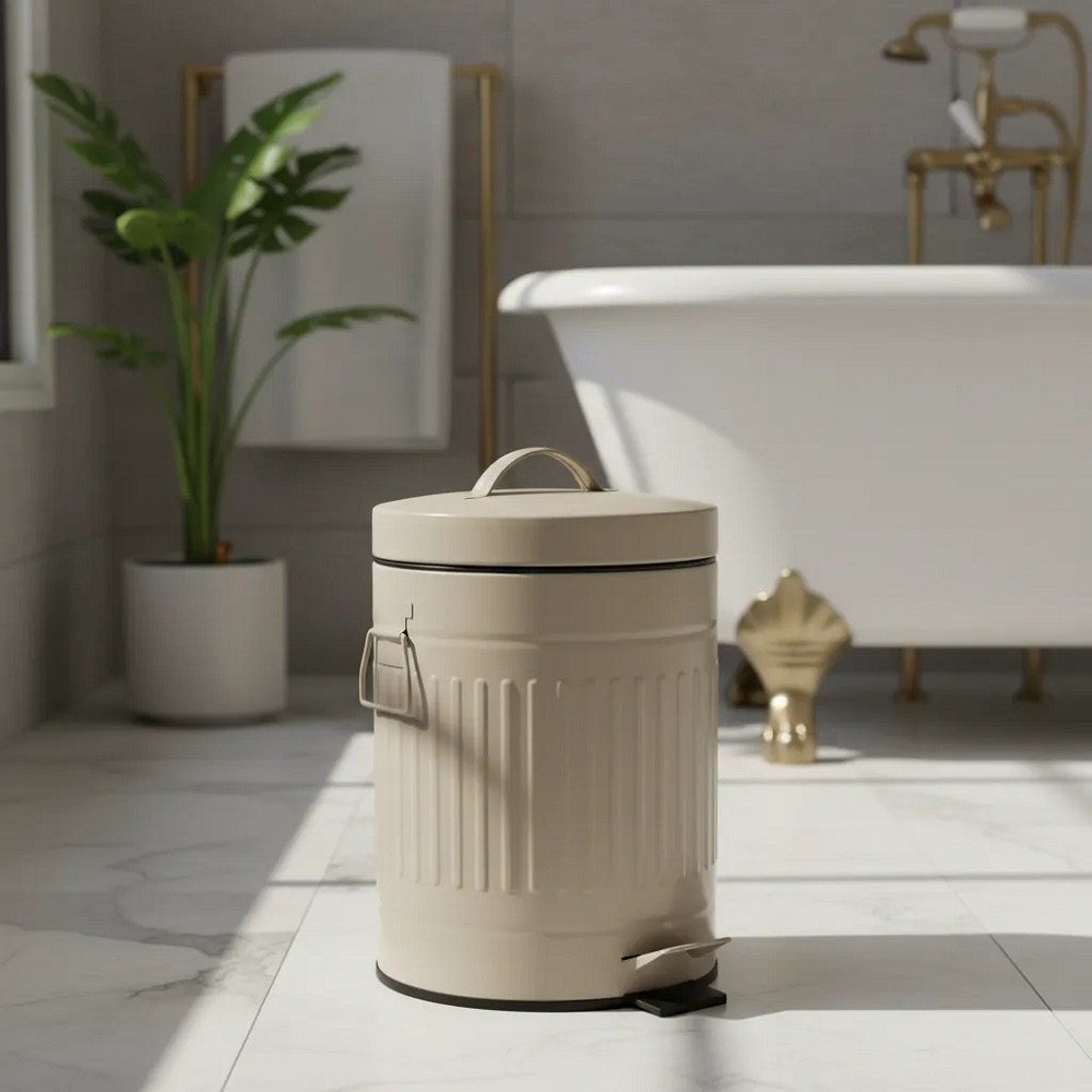 Cesto de Acero Oval marca SUKA de 5 lts con Pedal y Tapa Soft Close, ideal para espacios reducidos o para colocar en el baño al lado del inodoro por su formato oval que favorece su ubicación