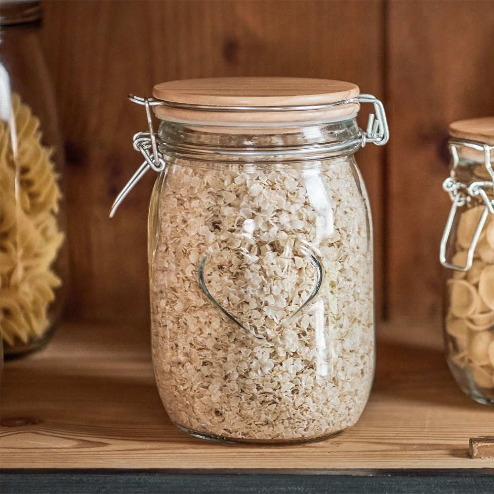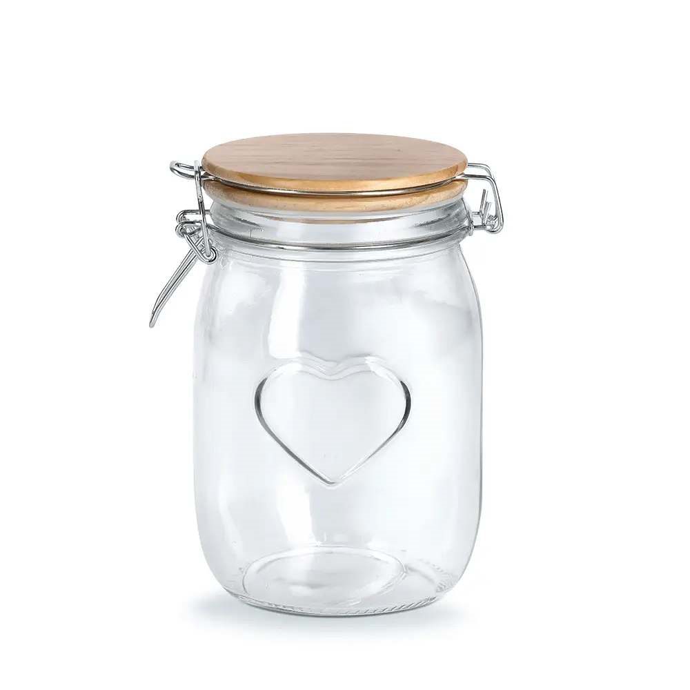 Frasco cód. 05M de Vidrio de 17x11cm con Tapa de Madera con broche a Presion*