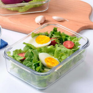Fuente de Vidrio para Horno con Tapa plástica hermética para guardado marca Borart de 1520cc capacidad y de 16x22x7cm .
