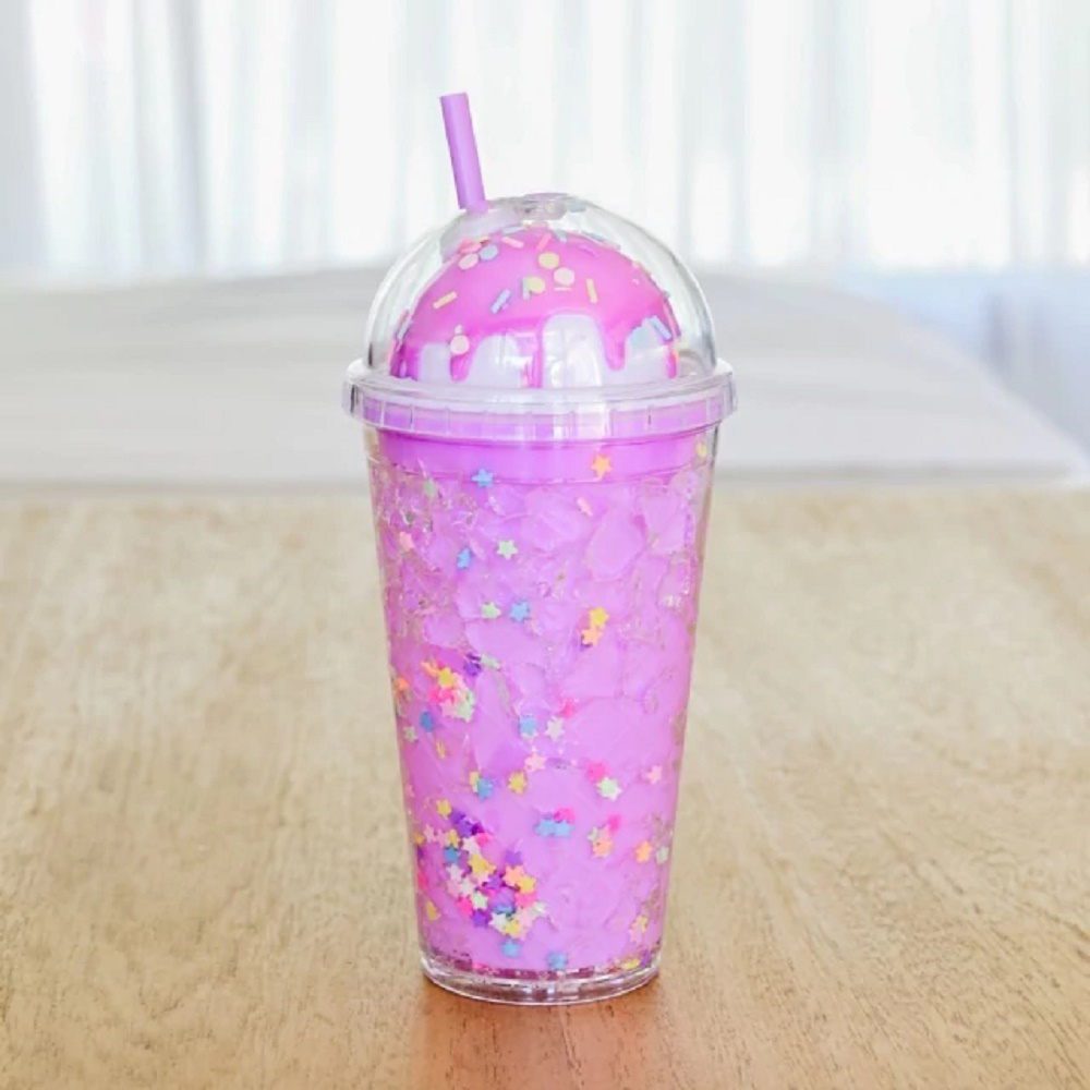 Vaso cód. 681 Plastico Duro con Sorbete de 20x10cm de 450ml con gel Refrigerante en su exterior*